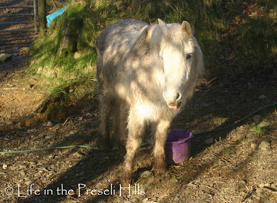 It was feeling almost springlike today as I was giving Pippin her extra food. The poor old thing's still going strong despite having a list of ailments as long as her tail. She loves her extra treats.